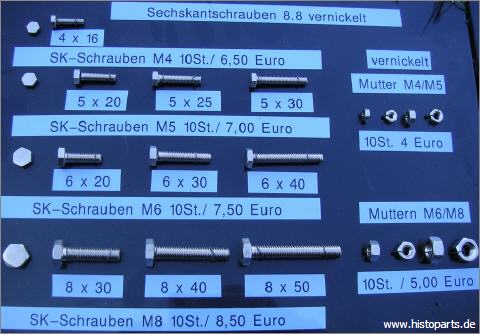 Sechskantschrauben der Festigkeitsklasse 8.8 ohne Normung auf dem Kopf vernickelt